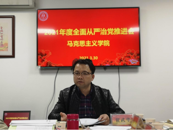 党委要结合马院特点认真贯彻落实校党委全面从严治党工作会议精神,把全面从严治党工作要点落到实处。一是要提高政治站位,必须始终坚持以习近平新时代中国特色社会主义思想为指导,坚决做到“两个维护”,树立“四个自信”。 二是要压实党委主体责任、第一责任人责任、党政同责、一岗双责,做到守土有责、守土担责、守土尽责。三是要严格落实意识形态工作责任,增强阵地意识,坚决做到马院姓马、在马言马、在马研马,坚定马克思主义理想信念。四是要加强党风廉政建设,加强以案促改警示教育,营造风清气正的政治生态。五是要加强制度建设,严肃组织生活,按照上级相关文件和精神,不断实现支部建设规范化、标准化。