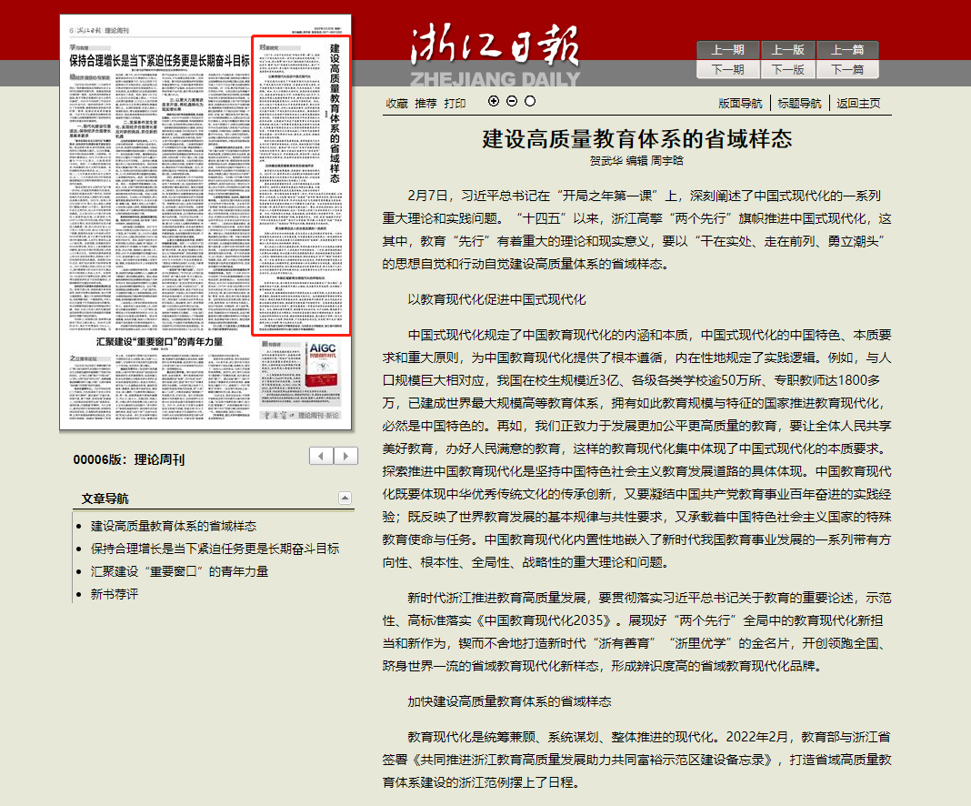 《浙江日报》2023年2月20日第6版全文刊发了快猫