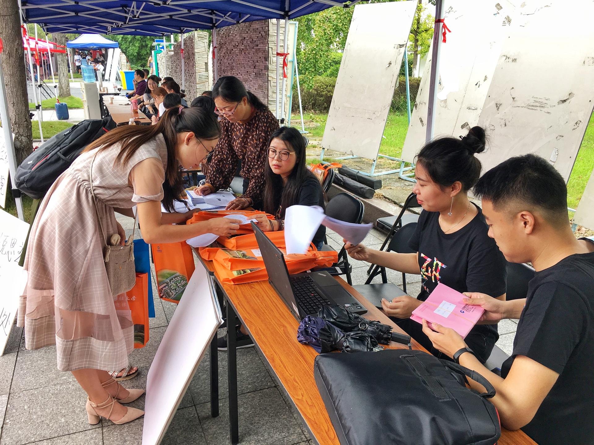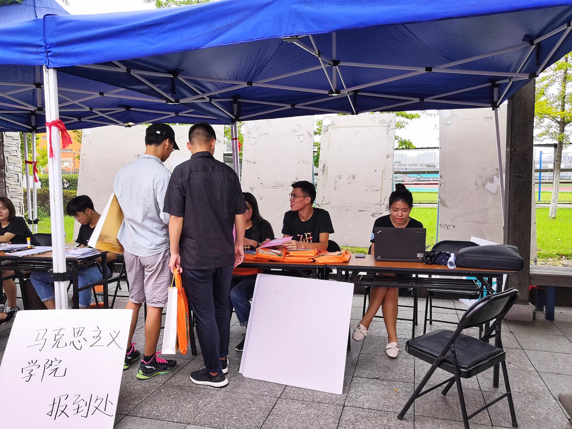 的18级研究生同学,天空中飘落细细的雨丝,为本就凉爽的天气平添了丝丝凉意,但这也挡不住大家报到的热情。