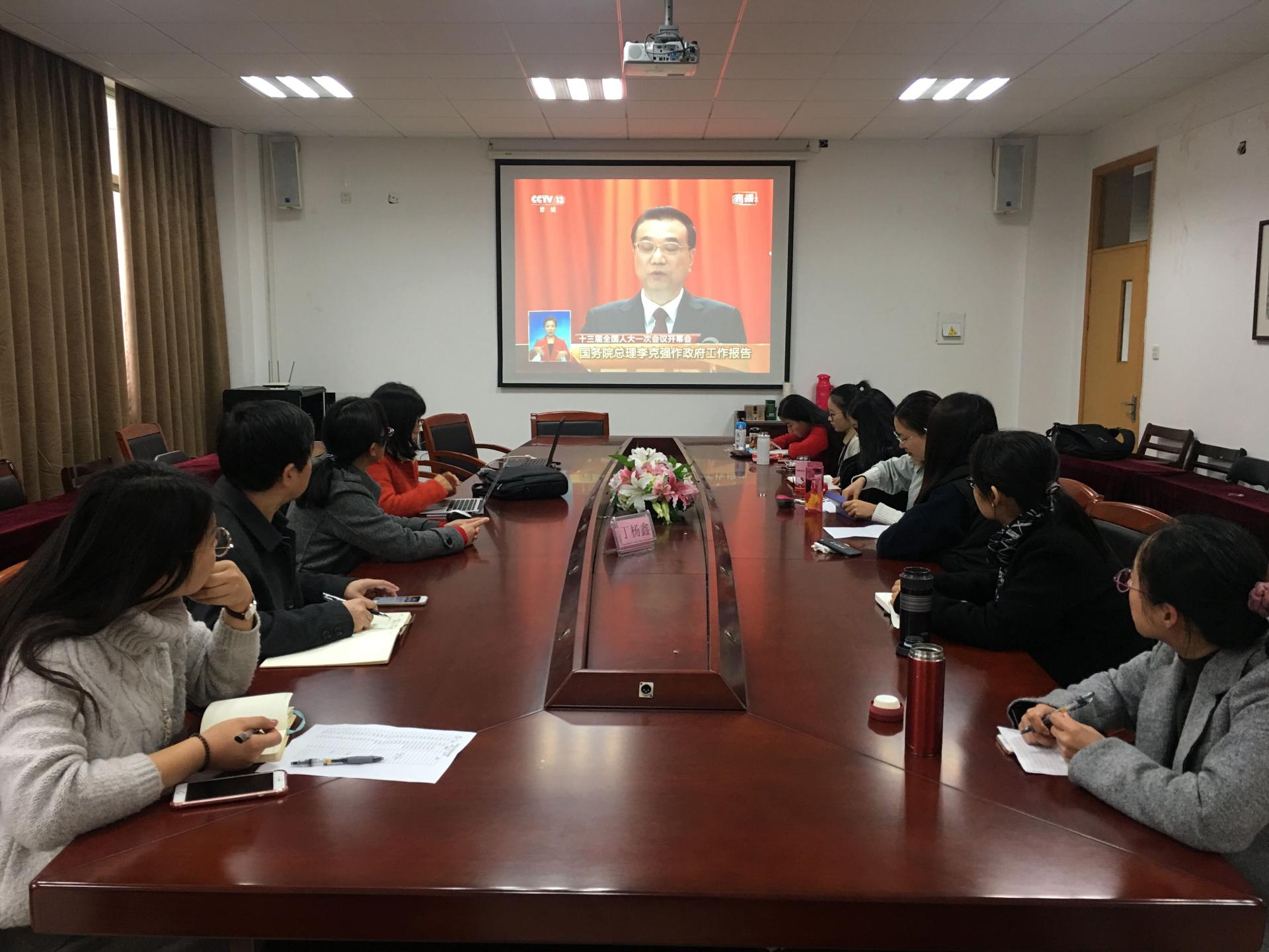 组织广大师生在3号楼211会议室集中观看开幕式盛况,认真聆听李克强总理所作的政府工作报告,观看现场秩序井然。开幕式结束后,师生们争相畅谈感想与体会。