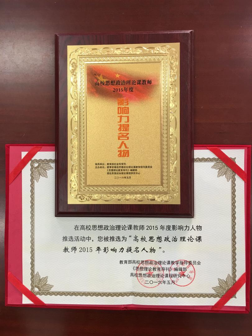教师历来都把立德树人、教书育人放在教学、科研工作的首位。2016年,有1人次荣获“全国高校思想政治理论课教师2015年影响力提名人物”,这是快猫