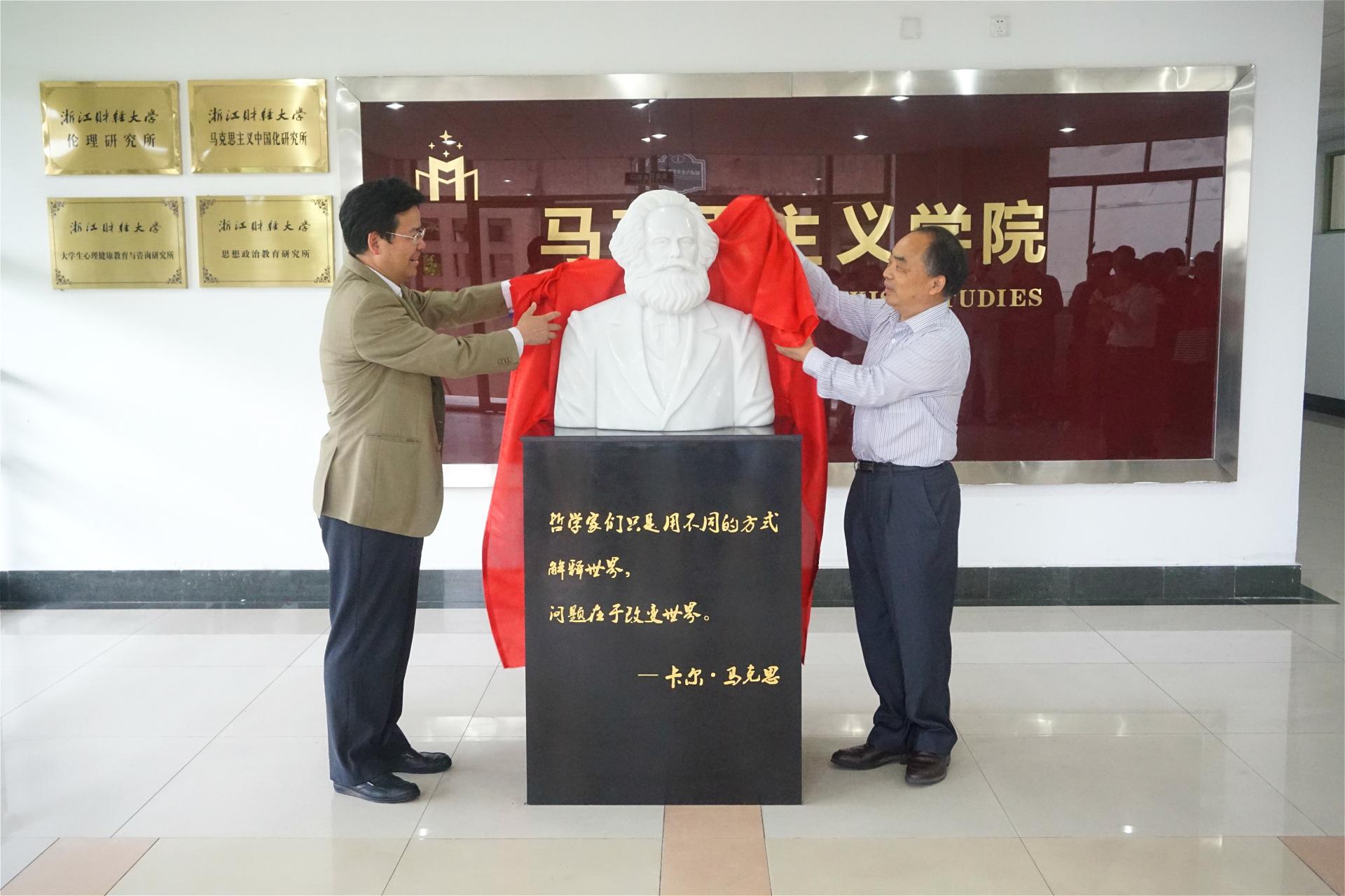 励如孟副校长共同为马克思雕像揭幕。