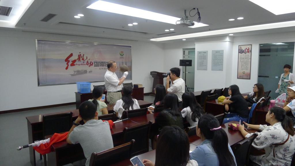 在党旗的引导下,同学们进入了一幢石库门房子,受到了李馆长的亲自接待,开始了一天的精神洗礼。李馆长详细介绍了中国共产党早期创建史,还带领他们观看了一系列生动的宣传图片和详实的文字记载资料以及以中国共产党诞生的曲折历史为题材的影视宣传片,使大家真切感受到了中国共产党诞生及其发展的曲折历史;接着李馆长又展示了珍贵的历史文物:一手的文献资料,如《新青年》《少年中国》《红星耀中国》等,日军早期钢盔和8年抗战一直使用的手枪等;最后,华正学主任画龙点睛,将此次参观与学生今后的学习生活联系起来,教导学生用红船精神激励专业梦。