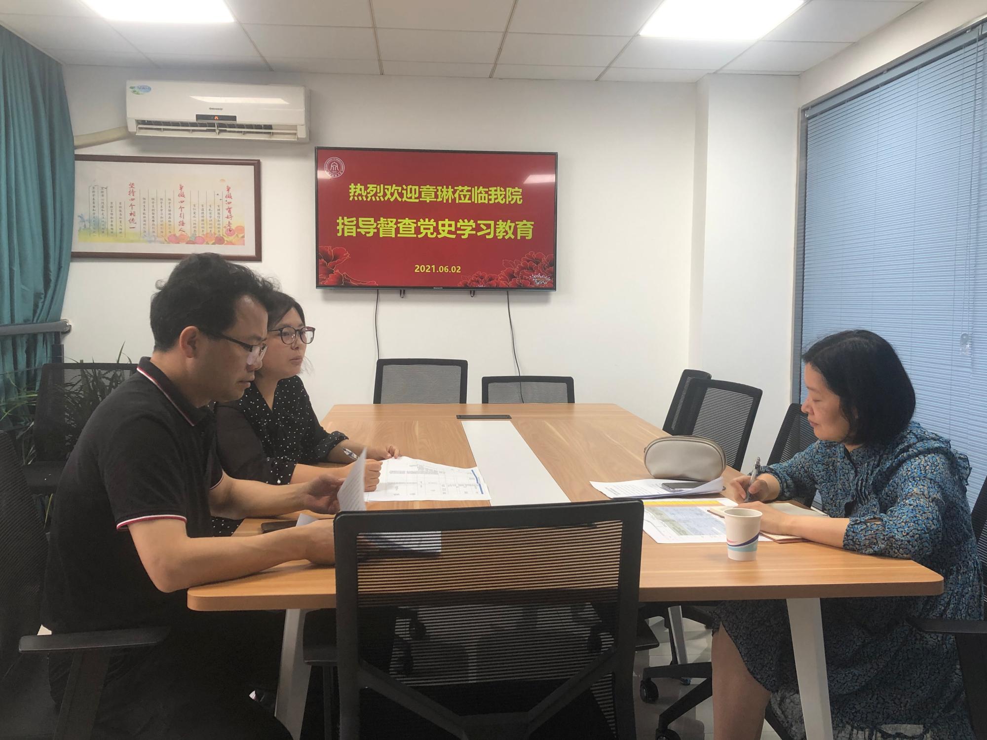 6月2日,快猫 党史学习教育第三督导组组长章琳莅临快猫 开展党史学习教育督查指导工作。快猫 党委书记、院长、党史学习教育领导小组组长贺武华汇报有关情况。