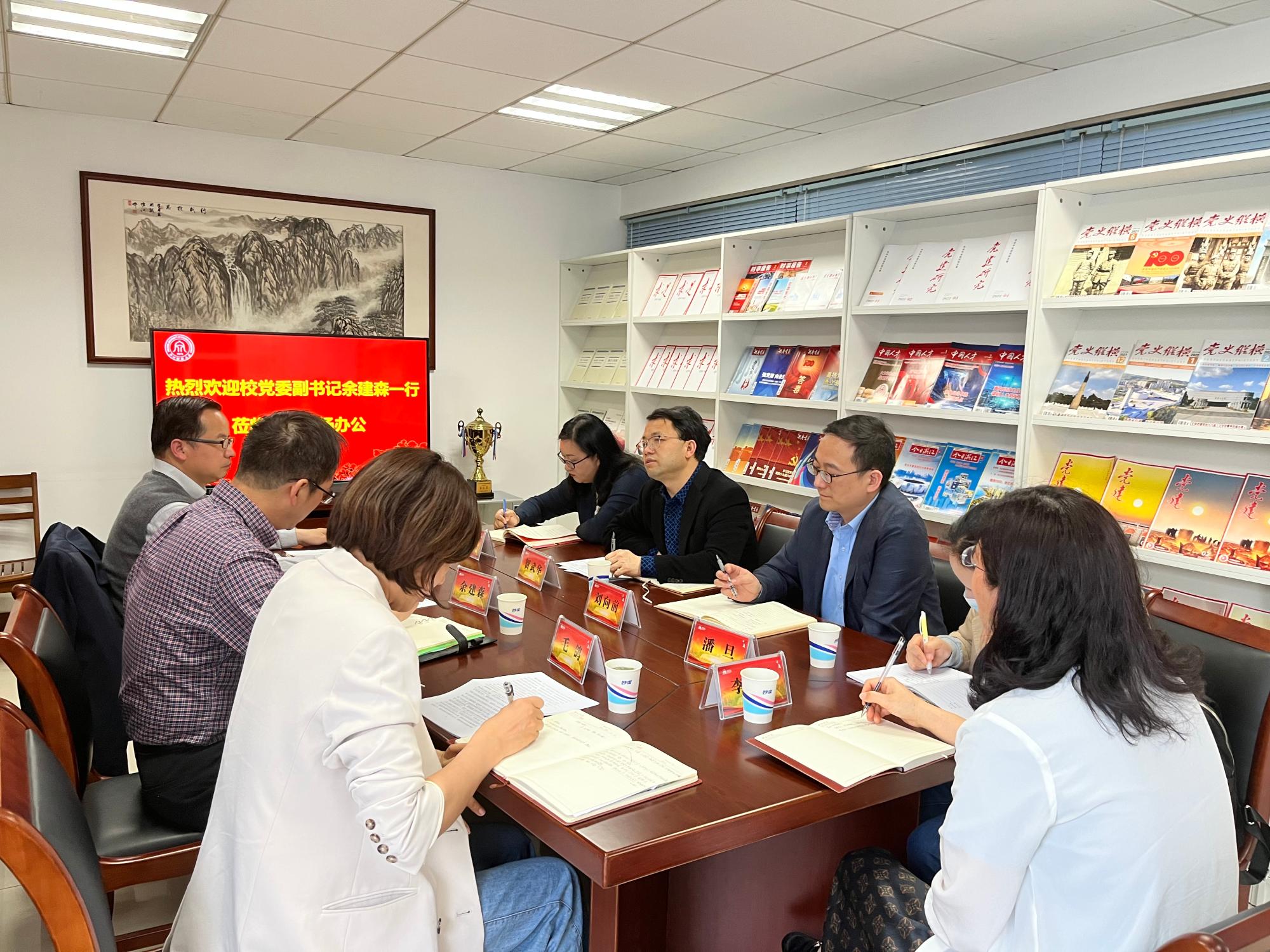 4月21日下午,校党委副书记余建森,党委委员、宣传部部长楼胆群,宣传部副部长毛鸽一行到快猫