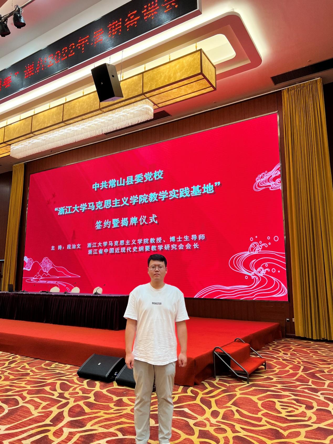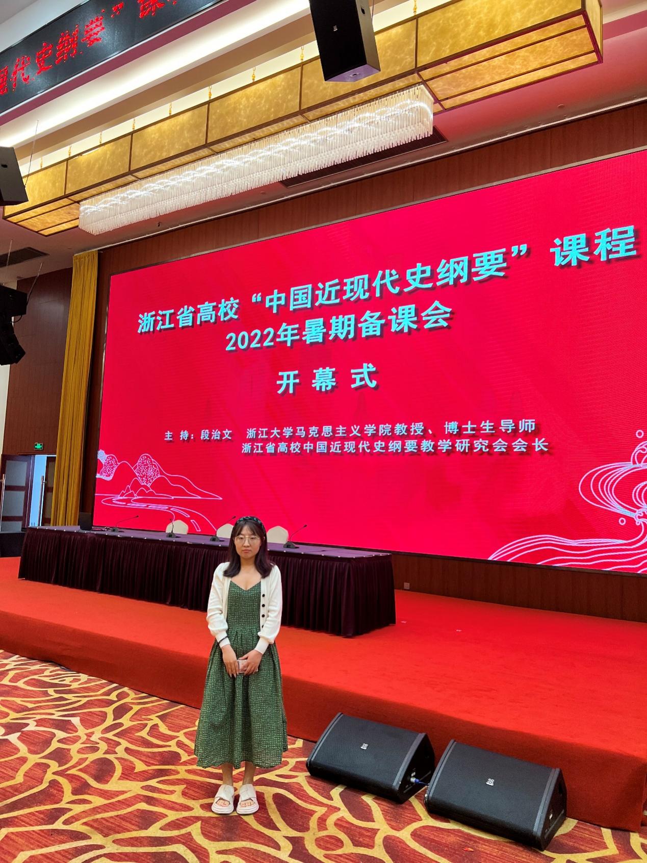 教师郑佳佳、侯馨茹在浙江常山县参加浙江省高校“中国近现代史纲要”课程教师2022年暑期备课会。本次备课会由浙江省高等教育学会马克思主义理论教育分会、全国高校“中国近现代史纲要”教学创新中心(浙江大学)、全国高校思政课“手拉手”集体备课中心(浙江大学—浙江省)、中共常山县委党校联合主办。来自全省50多所高校的60多名纲要课教师积极参与。