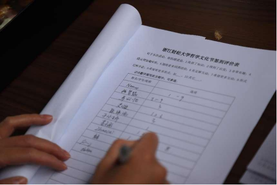 本届哲学文化活动节的首场活动以有奖问答的形式进行,题目分为选择题和问答题,既包含哲学基本常识,也包含哲学思想实验等内容。题目设置灵活有趣,注重哲学的人文关怀。同学们被有趣的哲学思考和精致的奖品所吸引,在有奖问答的现场排起了长龙。随着活动的进行,陆续又有不少师生为活动所吸引,前来参与问答挑战。13:30分,最后一道问答题被顺利答出,哲学知识问答活动圆满完成。