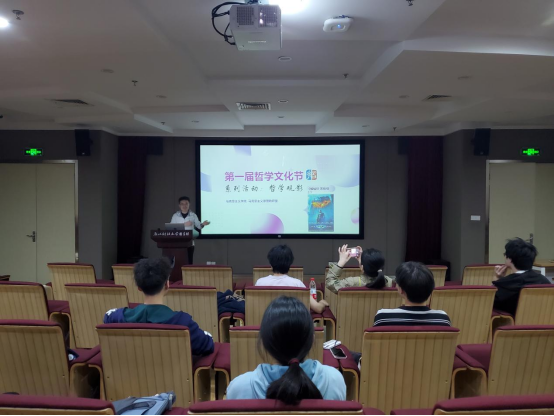 马克思主义基本原理教研室主办的第一届哲学文化节系列活动在图书馆多功能活动厅继续进行,第二场活动的主题是“哲学观影”,由王聪老师主持观看《蝙蝠侠·黑暗骑士》,吸引了各快猫