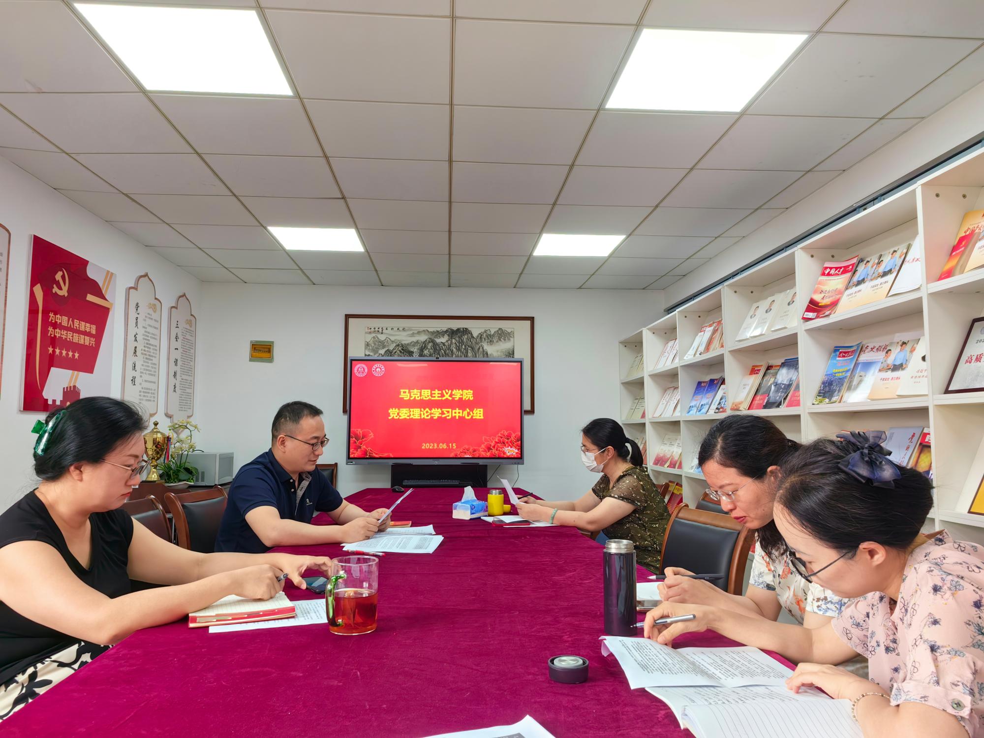 党委理论学习中心组召开学习会,开展深入学习贯彻习近平新时代中国特色社会主义思想主题教育第五次集中学习。会议由党委书记刘向前主持,党委理论学习中心组成员、各党支部书记参加学习,组织员列席会议。