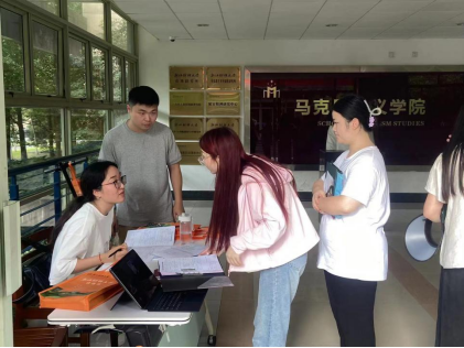 志愿者们一起为新生们办理入学报到手续,进一步核验身份、收取材料、分发新生入学资料,确保各位新生顺利完成报到工作。