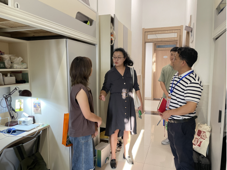 新生寝室,了解各位同学安顿情况,询问同学们对新环境的适应情况,并一一解答同学们在当前学习、生活中存在的困惑,帮助各位新生进一步适应新的学习环境与新的学习阶段。