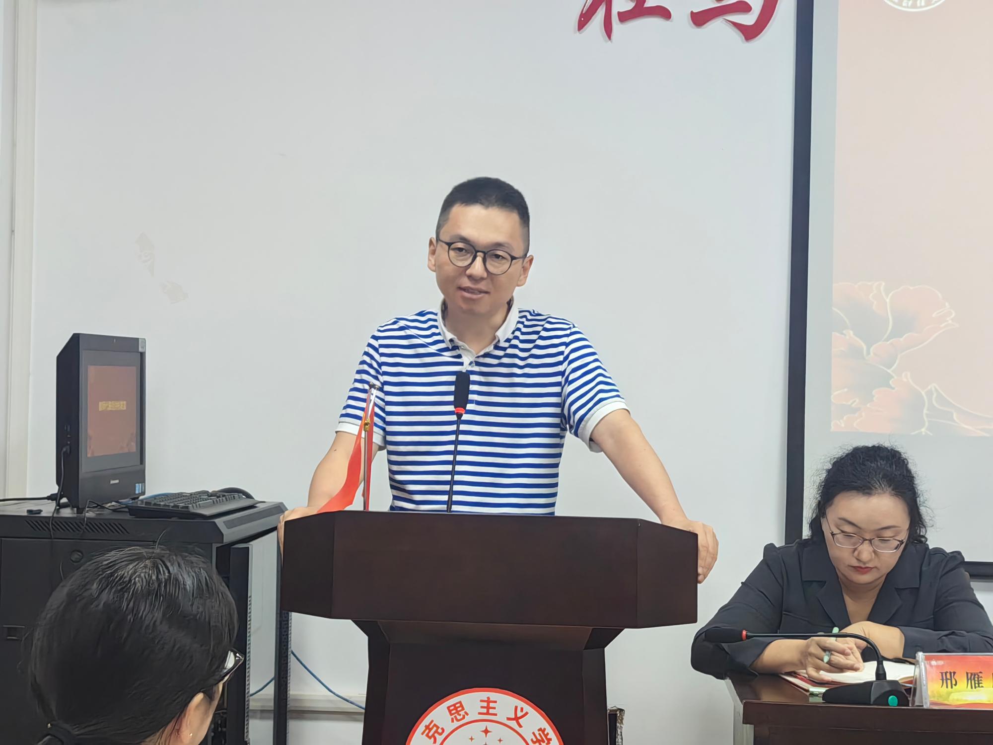 教师在教学、科研、研究生、党建、人才方面取得的喜人成绩,由教师代表胡洪彬发言。胡老师从信心、恒心、好奇心、借鉴心“四心”深入浅出地分享了自己在历练中成长,在成长中蜕变的故事,与会教师纷纷表示干货满满,受益匪浅。