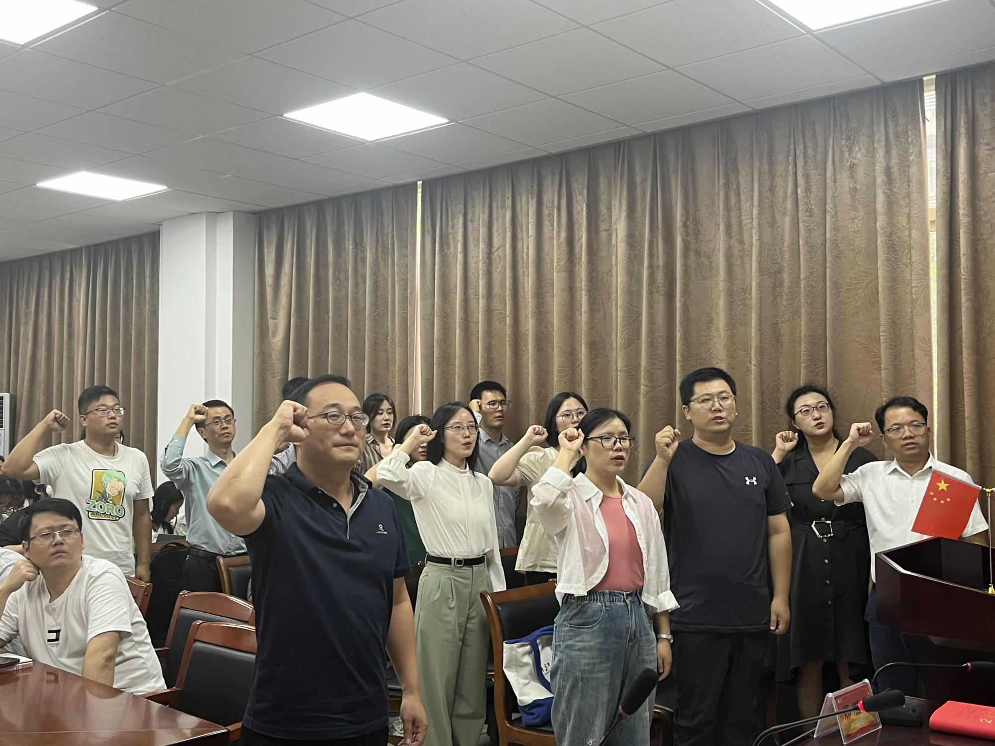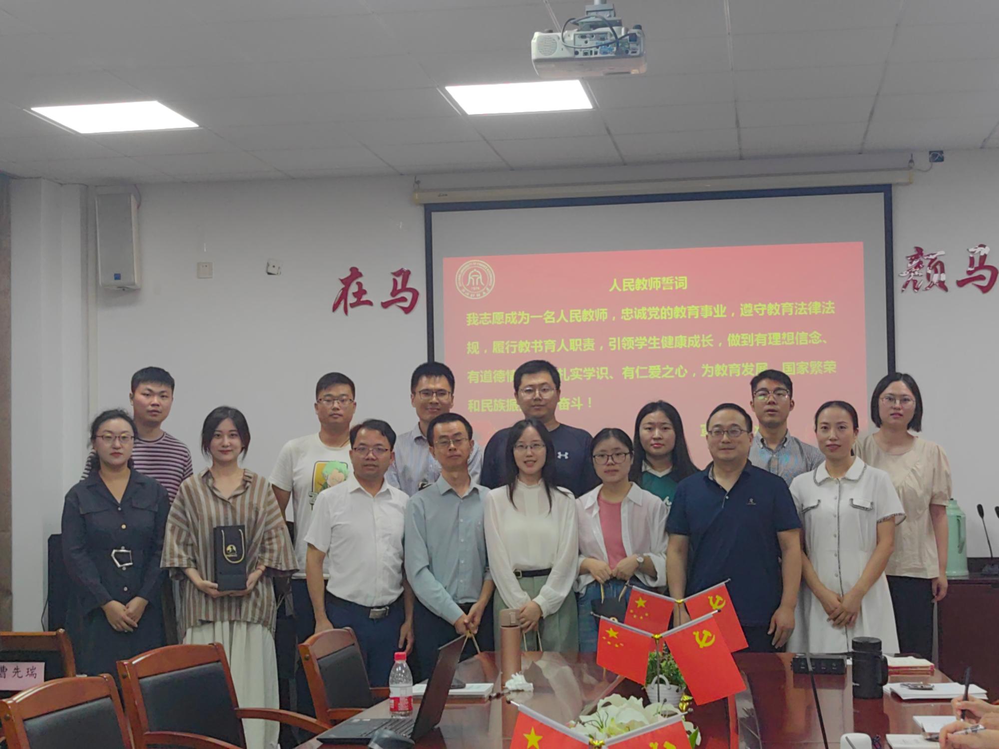 向各位新老师的加盟表示热烈的欢迎。每位新老师依次上台作了自我展示,叶健辉作为新教师代表发言。随后,全体新教师在党委书记刘向前的带领下进行庄严宣誓,表明了他们落实立德树人根本任务,为党育人,为国育才的坚定信心。