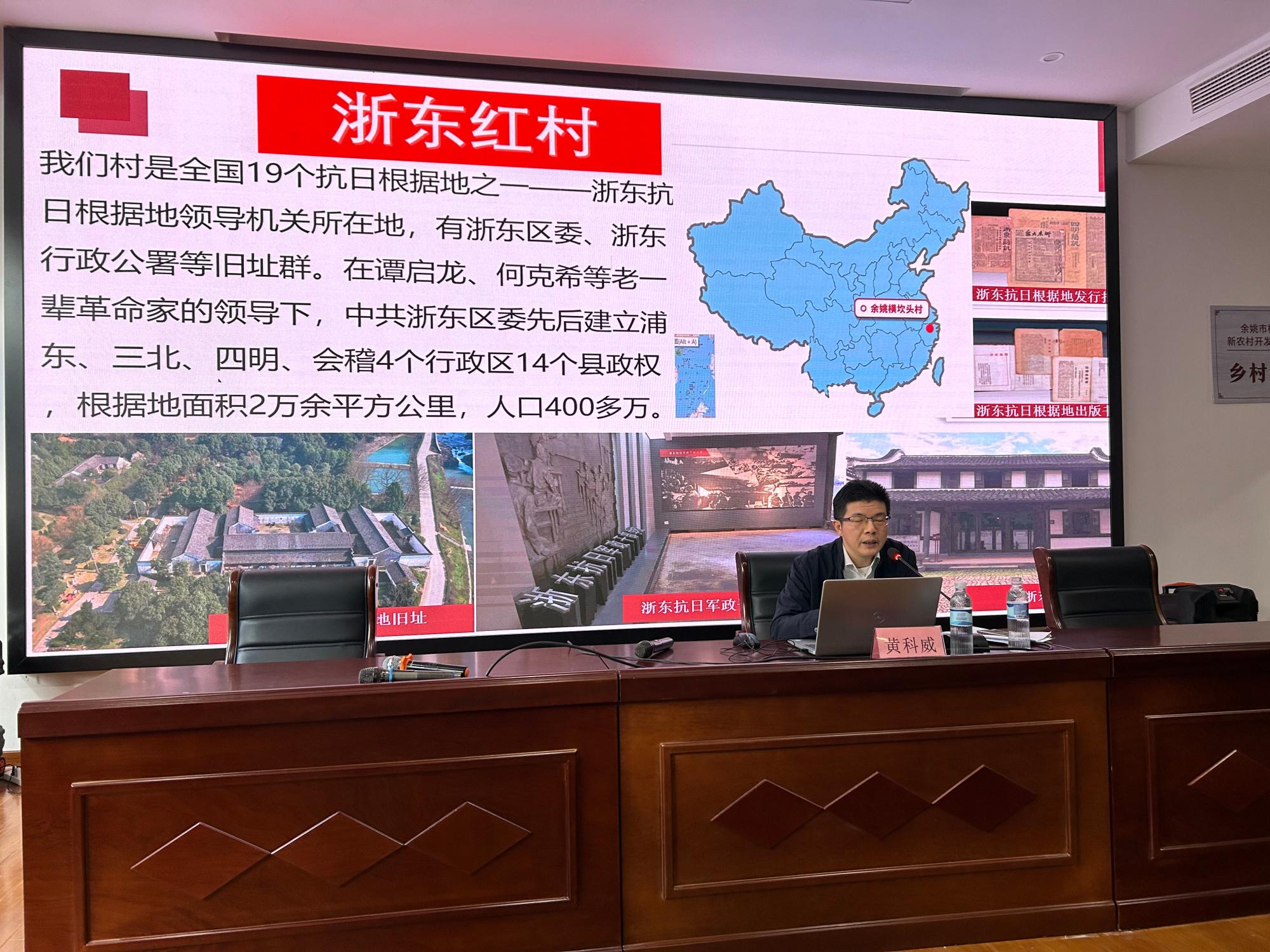 的学生讲了一堂生动的浙江乡村共同富裕课。黄书记讲述2003年习近平总书记曾到横坎头村视察工作时场景,以及习近平总书记给横坎头村的两封回信,希望他们“发扬老区的优良传统,保持艰苦奋斗、自力更生的精神面貌,解放思想,与时俱进,加快老区开发建设,尽快脱贫致富奔小康”。黄书记介绍了20年来,横坎头村在村党委班子的带领下,发扬老区人民艰苦奋斗、苦干实干精神,大力发展“红绿”融合的特色农旅产业,充分挖掘横坎头村历史优势、区位优势,打造浙东红村的历史过程,介绍了乡村产业发展和集体经济取得的成果。横坎头村为革命老区摆脱贫困实现共同富裕探索了一条新路径。