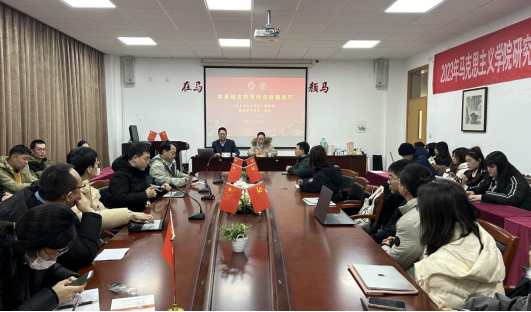 做题为“学术论文的写作与投稿技巧 ”的讲座。本次会议由院长贺武华和潘旦教授主持,马院全体硕士研究生及青年教师参加。