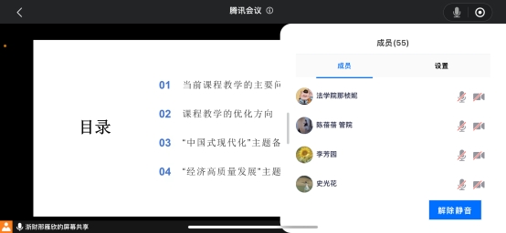 接着,邢雁欣副院长介绍了本学期形势与政策课程的教学专题及教学改革内容,提醒任课教师注意课程时间及课堂教学管理,做好开课准备。同时,邢院长围绕本学期形势与政策课程的两大专题开展带领大家开展集体备课,专题一为“中国式现代化”,围绕中国式现代化的探索历程、中国式现代化的特征、中国式现代化的本质要求等内容介绍了本专题的教学设计;专题二为“经济高质量发展”,结合中国经济发展现状,讲清楚中国经济的发展优势,从2023年中国经济取得的六个方面的成绩出发,增强学生对中国经济发展的信心。