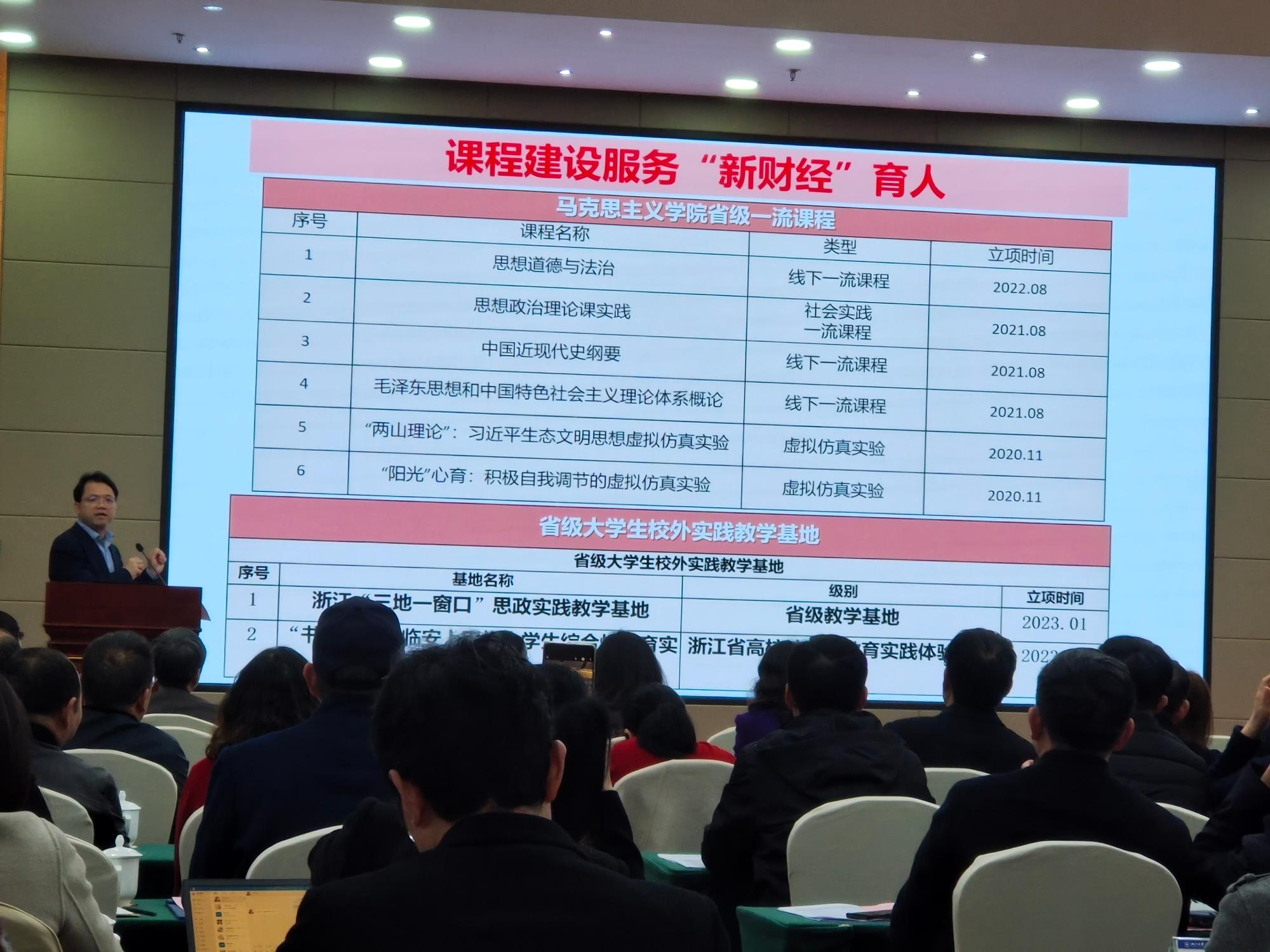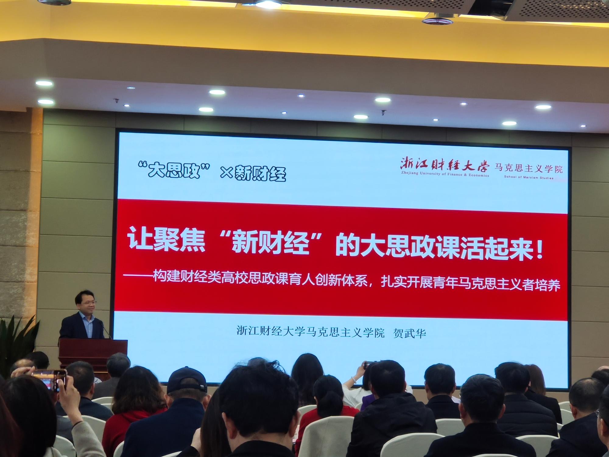 “1+1+N”新财经战略大思政课程体系、“三结合四统一”思政课创新教学模式、面向实践以赛促教的特色做法等。发言受到与会者广泛关注。