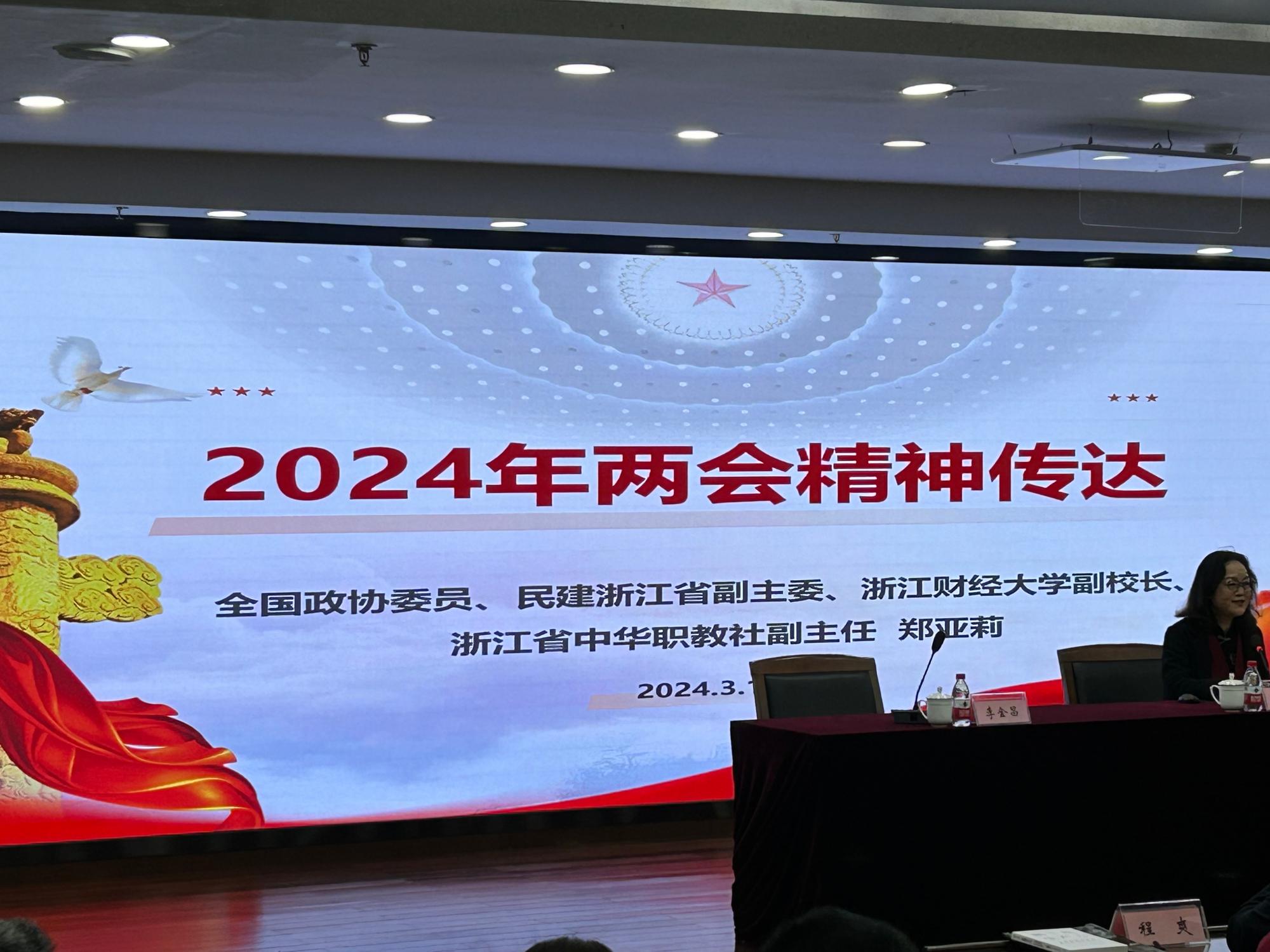 全国政协委员、副校长郑亚莉结合自己作为“两会”委员的亲身经历,传达宣讲“两会”精神。她详细介绍了大会的基本情况和主要精神、政府工作报告主要内容、会议期间代表的意见建议以及个人今年参会履职感受。郑亚莉副校长分享了参政议政、履职尽责的经历,特别就本次两会中提交的“关于加快设立“中国工匠日”“关于支持深化浙江‘丝路电商’国际合作,推进数字经济创新发展”等提案做了解读和分享,让学生听到了在全国两会上的浙财声音。