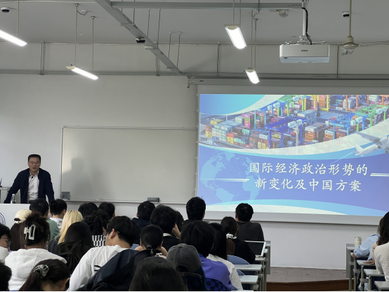为引导大学生正确认识错综复杂的国际政治经济环境,引领青年深刻理解中国式现代化事业所处的历史方位和发展阶段,4月18日,校党委副书记徐晓东走进“形势与政策”课堂,为22级经贸专业学生讲授《国际经济政治形势的新变化及中国方案》专题思政课。