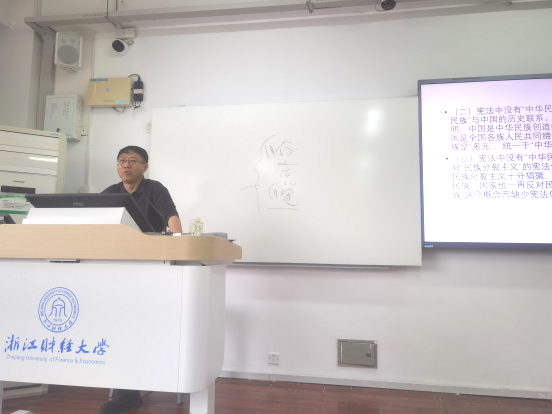 6月6日,李占荣副校长应邀步入“形势与政策”课堂,为23视传专业与23书法专业的学生带来一堂深刻而富有启发性的专题思政课,主题为“中华民族入宪的意义与中华民族共同体意识”。