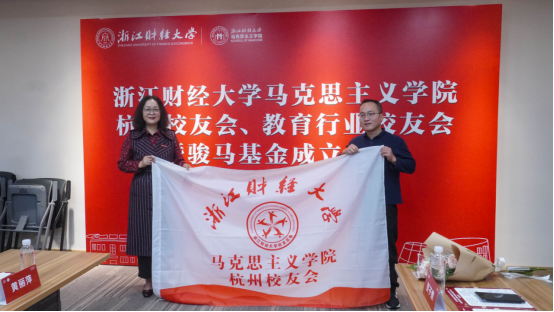随后,郑亚莉副校长为马院杭州校友会、马院教育行业校友会成立进行授旗,并与快猫