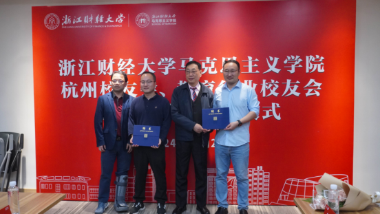 (退休教职工代表为杭州校友会、教育行业校友理事颁发聘书)