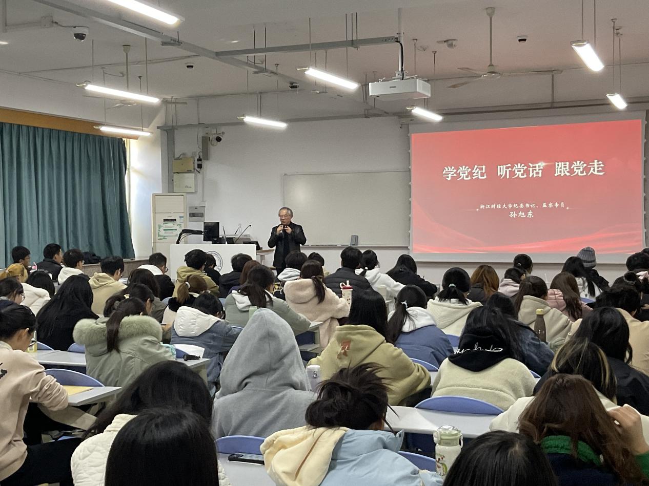 校纪委书记、监察专员孙旭东走进《形势与政策》课堂,为2024级国贸1班、国贸2班以及会计1班的同学们带来了一场题为《学党纪·听党话·跟党走》的精彩授课,深刻阐述习近平总书记关于党的自我革命的重要思想。