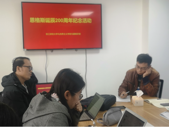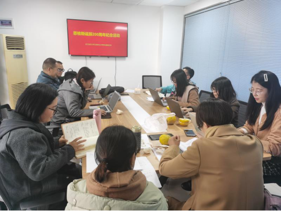 楼517A教研活动室举行“恩格斯的思想及当代价值”座谈会和原著品读分享会,纪念全世界无产阶级和劳动人民的伟大导师、马克思主义创始人之一的弗里德里希·恩格斯200周年诞辰。