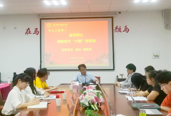 党委书记、院长贺武华为全体研究生上了一场主题为“坚守初心,做新时代‘六要’研究生”的党课,副院长邢雁欣,研究生秘书,研究生辅导员和全体研究生参加。