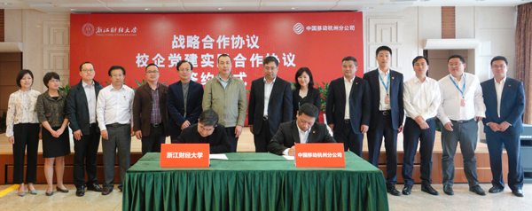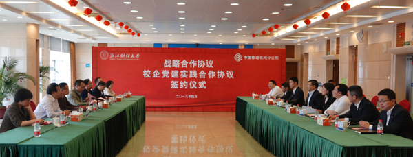 党委书记李金昌、副校长黄建新,中国移动杭州分公司党委书记、总经理王文生出席签约仪式。仪式由中国移动杭州分公司副总经理高琴主持。