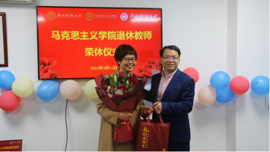 仪式上,领导班子和同事们回顾了李秋华老师四十二年的工作历程,并对她今后的退休生活送上了美好祝福,学生代表孙仙遇为导师献花,感谢师恩。党委书记、院长贺武华和工会主席肖云龙分别代表快猫