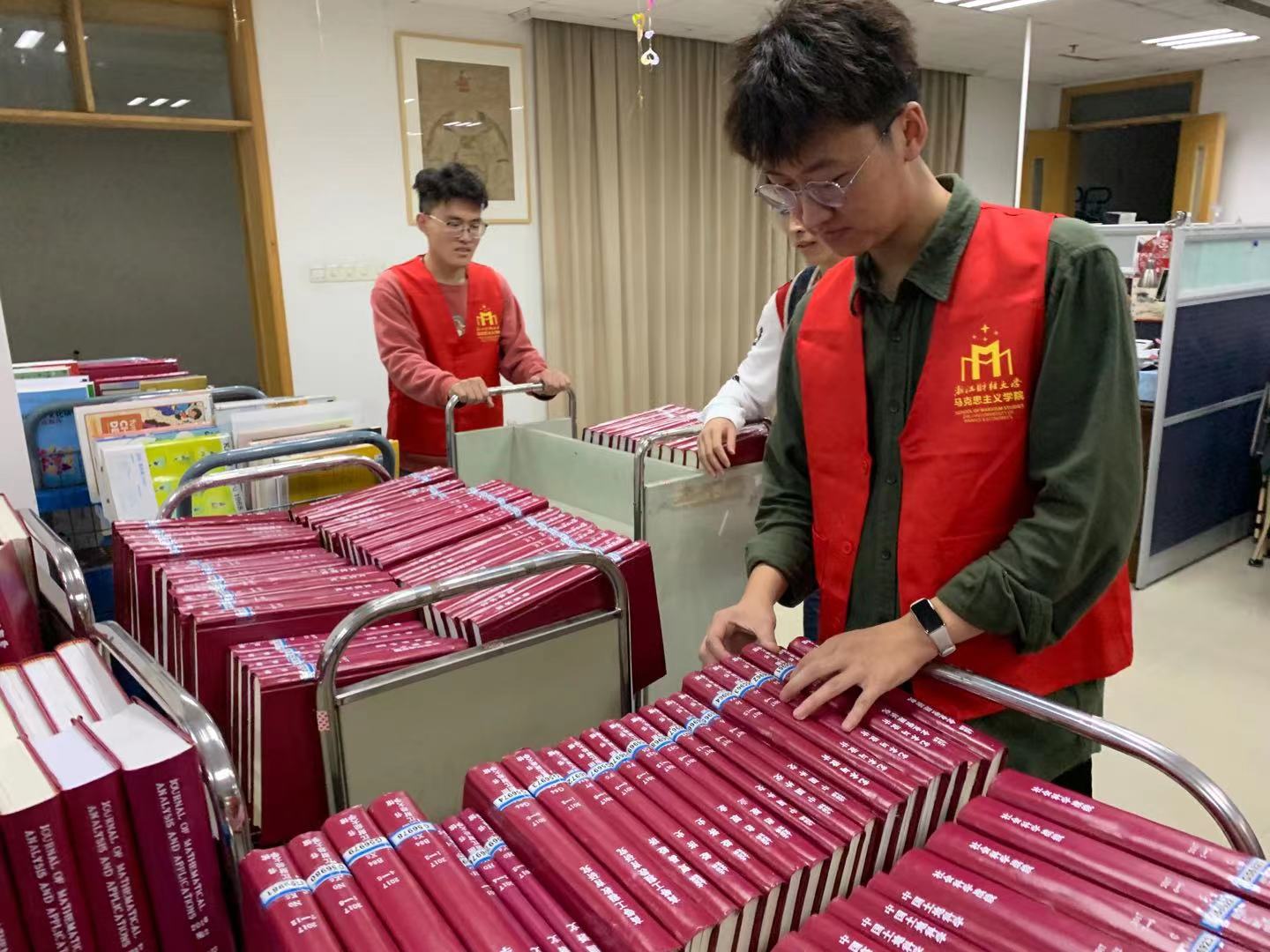 组织志愿者去图书馆进行志愿者服务。此次志愿者活动由2020级 及2021级学生共同参与。