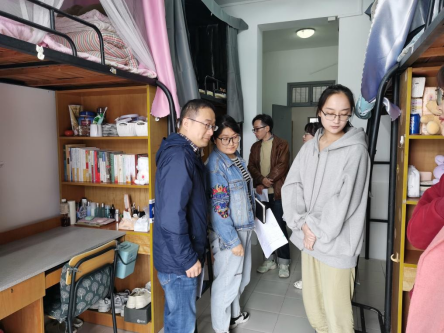 党委副书记、副院长刘向前、研究生辅导员王瑜、2020级研究生班主任杨晓帆以及2021级研究生班主任郑子律、程能的五位老师来到桃李苑3号楼和1号楼,参观同学们的寝室并对寝室环境进行打分。