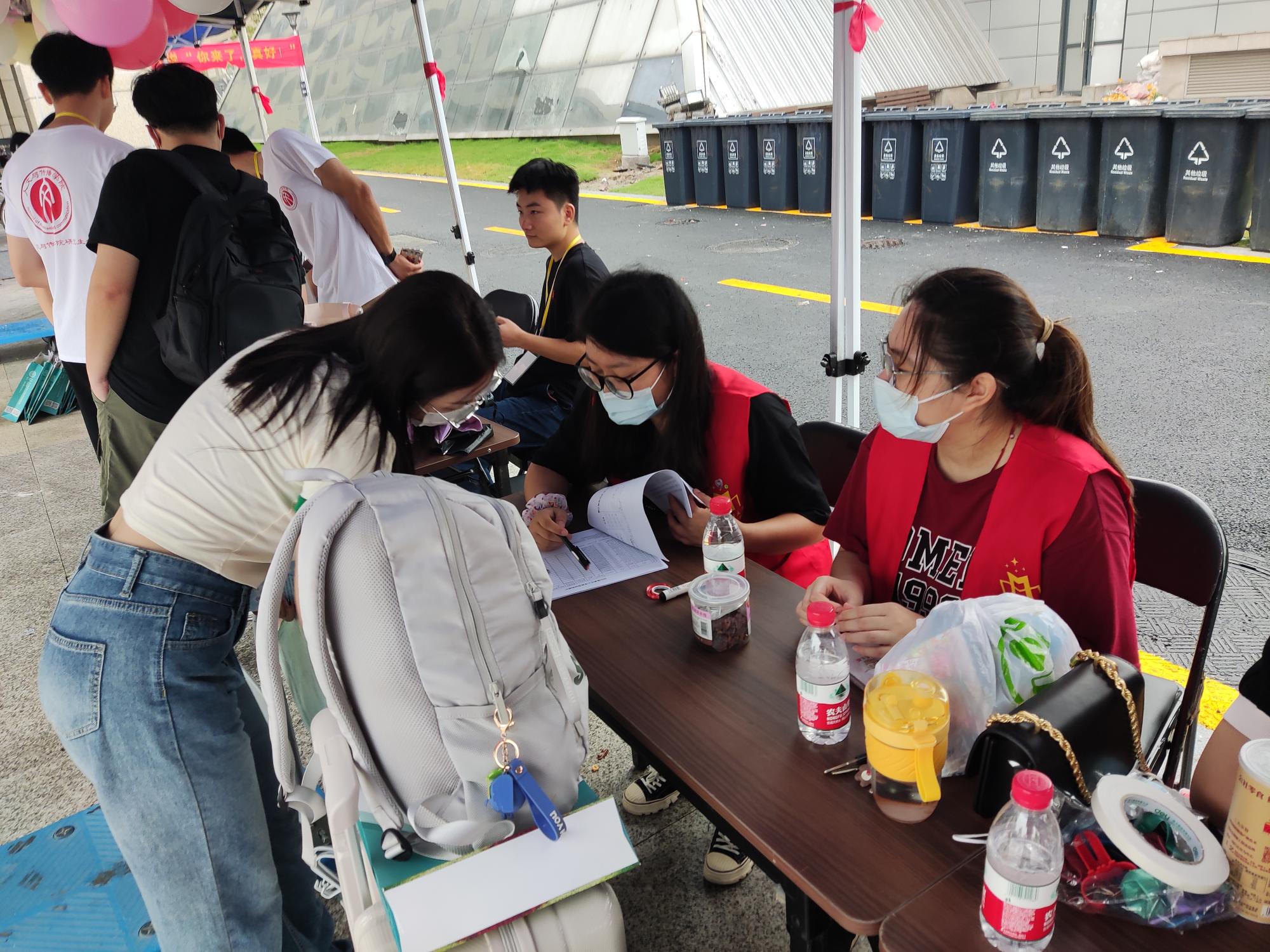 志愿者们接待新生、查验材料、搬运行李、讲解入学相关事项和之后的日程安排等。在大家的共同努力下,2022级17位研究生顺利完成了报到。