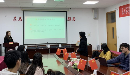 会议开始,欧雨萌同学通过播放视频,带领同学们回顾了党的二十大重要精神,全方位学习解读党的二十大精神的重要意义和丰富内涵。